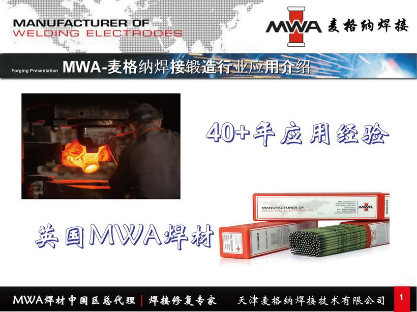 從1974年開始,MWA公司一直就在英國生產(chǎn)高品質(zhì)的焊條。MWA是目前英國唯一一家維修與維護用焊材制造商,同時設(shè)計制造品類廣泛的獨特鎳基和鈷基焊材。MWA能夠設(shè)計生產(chǎn)所有類型的焊條及各種類型焊絲,可以滿足各種應(yīng)用。重新開發(fā)的鎳合金系列焊材,廣泛用于核、化工和石化行業(yè)中的Inconels、Monels、Hastelloys、以及Nimonics等合金的焊接。值得一提的是MWA在鍛造行業(yè)有著幾十年豐富的成功應(yīng)用經(jīng)驗,MWA設(shè)計開發(fā)的獨特鈷基焊材已被證明能大大提高工模具的使用壽命。MWA的焊材都經(jīng)過了嚴格測試,以確保滿足其技術(shù)要求,所有批次都經(jīng)過了高可焊性標(biāo)準(zhǔn)的檢查。