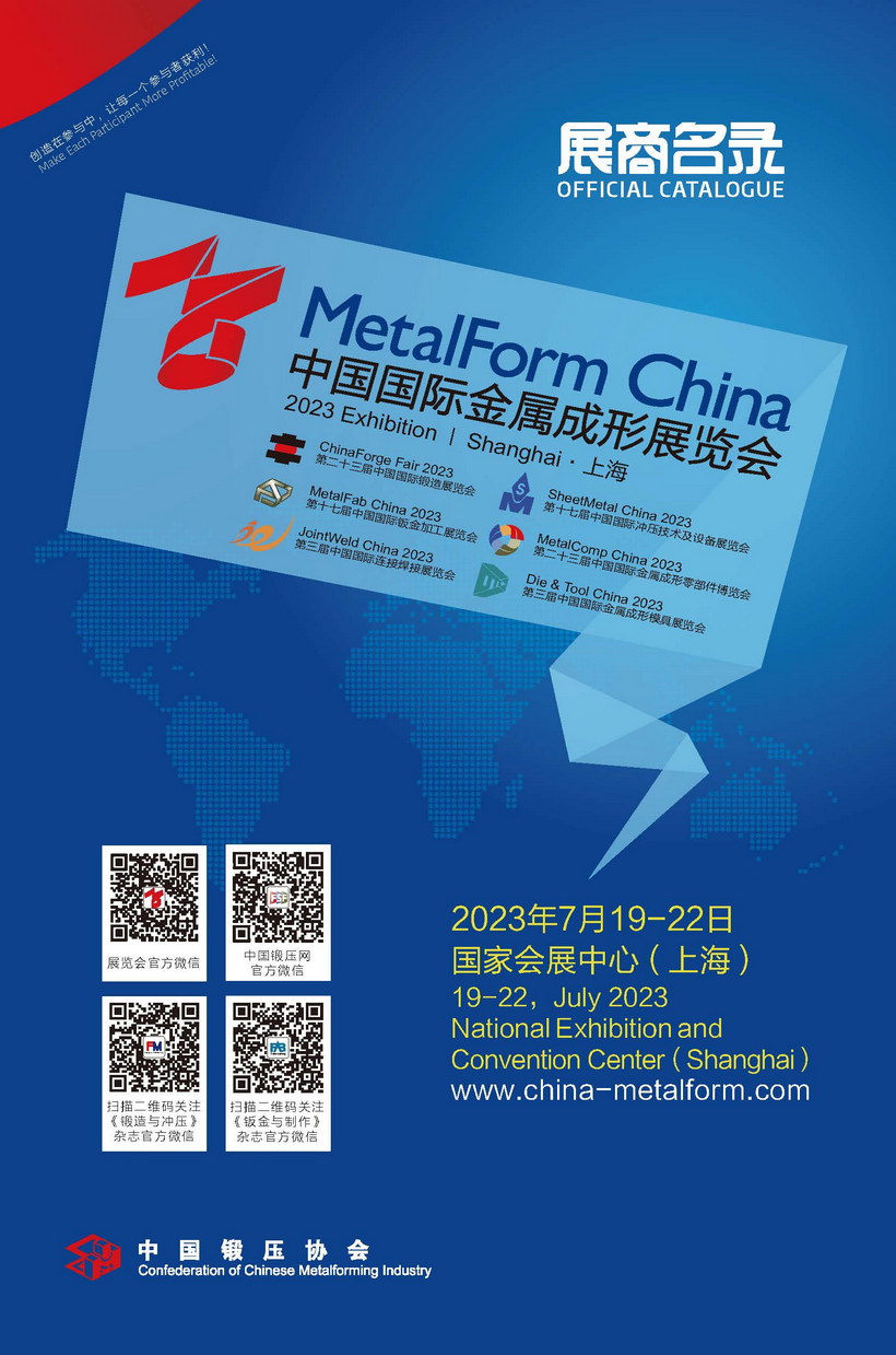 中國國際金屬成形展覽會,由中國鍛壓協(xié)會始創(chuàng)于1990年的北京鍛造展和金屬零部件博覽會,與創(chuàng)辦于2004年的上海沖壓展和鈑金展,于2007年在北京合并而成。其中,鍛造展是世界唯一單獨(dú)舉辦的專業(yè)展覽會,展示規(guī)模和水平很高;沖壓和鈑金制作展,是世界七大同類專業(yè)名展之一,是國內(nèi)唯一的全國性沖壓和鈑金加工專業(yè)展!