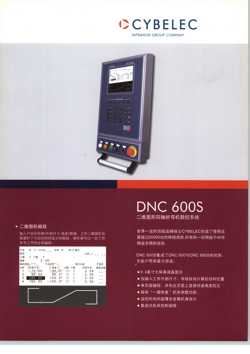 瑞士CYBELEC公司,成立于1970年,是一家專業(yè)開發(fā)鈑金數(shù)控系統(tǒng)并在該領(lǐng)域享譽(yù)全球的領(lǐng)頭羊企業(yè)。1970年,CYBELEC公司開發(fā)出全世界第一臺折彎機(jī)數(shù)控系統(tǒng),1978年推出了具有劃時代意義的世界第一臺通過微處理器控制的數(shù)控系統(tǒng),使數(shù)控折彎機(jī)實(shí)現(xiàn)了真正的電液同步。直到今天,這種電液同步技術(shù)仍然作為一種標(biāo)準(zhǔn)模式被行業(yè)內(nèi)所有機(jī)床制造商所采用。瑞士CYBELEC公司技術(shù)領(lǐng)先,實(shí)力雄厚,并不斷在技術(shù)上創(chuàng)新,為世界鍛壓數(shù)控自動化做出了重要貢獻(xiàn)。40年以來,在全球已累計生產(chǎn)銷售50000多套CYBELEC數(shù)控系統(tǒng)。其產(chǎn)品主要面向:折彎機(jī),剪板機(jī)等。
