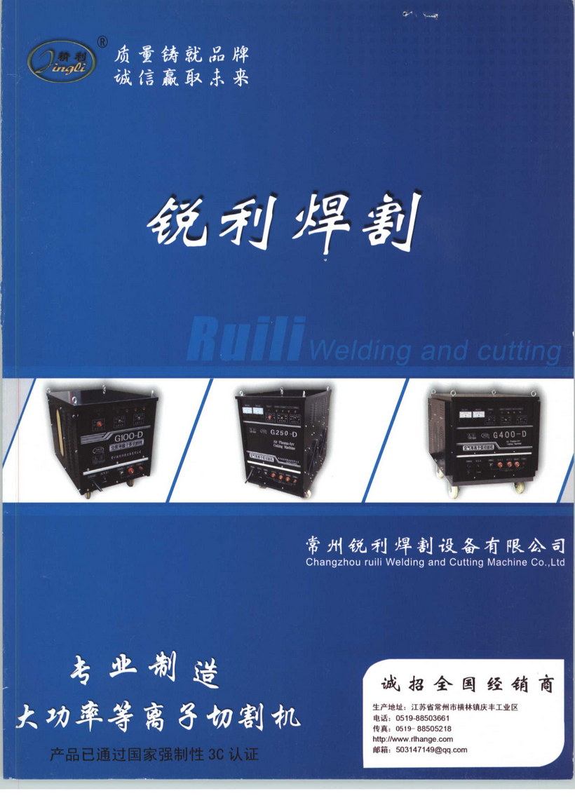 常州銳利焊割設(shè)備有限公司(原常州精藝焊割成套設(shè)備廠),位于滬寧高速和沿江高速交匯處。歷經(jīng)十年的努力與發(fā)展現(xiàn)已成為國內(nèi)等離子切割機(jī)制造企業(yè)中的佼佼者,其產(chǎn)品質(zhì)量與服務(wù)均得到了廣大用戶的肯定與信賴。公司是具有雄厚的制造能力及完善的檢測設(shè)備。產(chǎn)品工藝先進(jìn),性能優(yōu)良,結(jié)構(gòu)合理,造型新穎。所有產(chǎn)品通過國家權(quán)威機(jī)構(gòu)強(qiáng)制性安全認(rèn)證CCC。