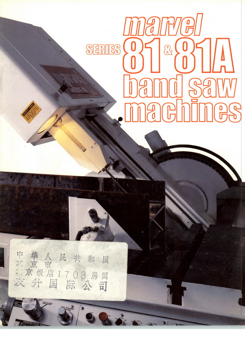 Marvel Manufacturing Company, Inc. offers a complete line of metal cutting saws and ironworkers under our MARVEL and SPARTAN trademarks. Marvel introduced the first vertical tilt-frame band saw in 1917 and remains the leader in the vertical tilt frame market. Our Marvel line of vertical saws ranges from the single cut universal Series 8 to our fully automatic programmable Touch Tech models with miter cutting up to 60 degrees. Our Spartan band saw line features both hinge and dual column band saw designs in capacities from 12 to 60 inches as well as a complete line of plate saws and contour saws. The Spartan brand name also includes high production thin kerf carbide circular saws and our Spartan Ironworkers which are available in capacities from 50 to 180 tons.