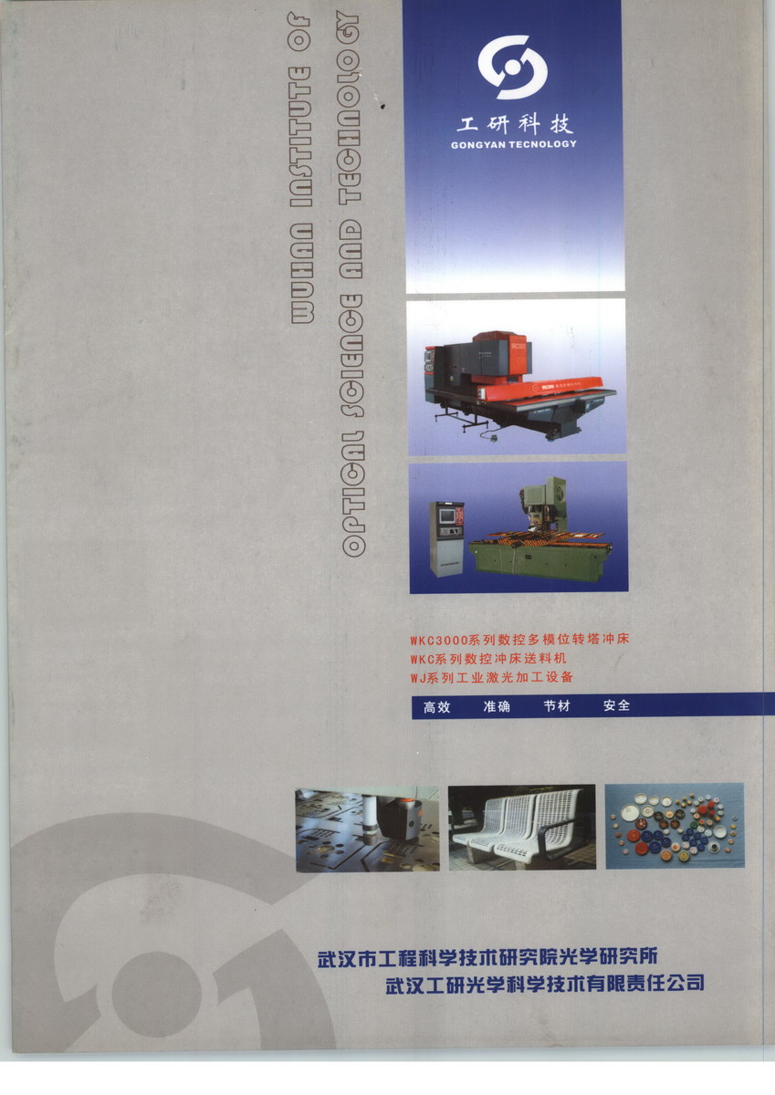 武漢工研光學(xué)科學(xué)技術(shù)股份有限公司,前身系武漢市工程科學(xué)技術(shù)研究院光學(xué)研究所,成立于1981年,是集研發(fā)、設(shè)計(jì)、生產(chǎn)、銷售為一體的高新技術(shù)企業(yè)。本公司科技實(shí)力雄厚、產(chǎn)品技術(shù)先進(jìn),在國(guó)內(nèi)光機(jī)電一體化、數(shù)控技術(shù)、工業(yè)與醫(yī)療激光技術(shù)等眾多領(lǐng)域中,都具有一定的學(xué)術(shù)地位和良好的產(chǎn)品聲譽(yù),目前已成為武漢市東湖高新技術(shù)開發(fā)區(qū)和“武漢.中國(guó)光谷”的骨干企業(yè),本公司從80年代初就開始從事“WKC系列數(shù)控沖床送料系統(tǒng)”的研制工作,是全國(guó)最先研制開發(fā)和批量生產(chǎn)微機(jī)數(shù)控沖床送料系統(tǒng)的企業(yè)。產(chǎn)品廣泛應(yīng)用于篩板、瓶蓋、糧機(jī)、印鐵制罐、五金、電機(jī)、電器、家電、建筑裝飾材料、印刷、揚(yáng)聲器、消聲器、空調(diào)、制鎖、燈具、儀表、通訊、汽車配件、電氣柜、石油化工、制藥、造紙、廚房設(shè)備等冷沖壓加工行業(yè),目前已銷往國(guó)內(nèi)除西藏以外的全部省、市、自治區(qū),并出口東歐、東南亞以及香港、臺(tái)灣等多個(gè)國(guó)家和地區(qū)。2005年,WKC系列數(shù)控沖床送料機(jī)被市場(chǎng)品牌管理聯(lián)合會(huì)授予“中國(guó)知名送料機(jī)品牌”稱號(hào)。本公司最新研制生產(chǎn)的WKC3000系列數(shù)控多模位沖床,是專為國(guó)內(nèi)大多數(shù)中小型加工企業(yè)制造的一種經(jīng)濟(jì)型設(shè)備。該產(chǎn)品能適應(yīng)加工企業(yè)品種多、批量小、加工周期短、業(yè)務(wù)多樣性、工藝變化大的經(jīng)營(yíng)特點(diǎn),沖制各種復(fù)雜的孔形。其操作系統(tǒng)也是專門針對(duì)廣大中小型加工企業(yè)生產(chǎn)操作人員文化程度和加工特點(diǎn),由本所自主開發(fā)的簡(jiǎn)單實(shí)用的新一代軟件。產(chǎn)品價(jià)格雖然低廉,但關(guān)鍵零部件如主機(jī)、交流伺服系統(tǒng)、精密滾珠絲杠、直線導(dǎo)軌、工業(yè)控制計(jì)算機(jī)等全部采用國(guó)內(nèi)機(jī)床行業(yè)中知名企業(yè)的優(yōu)質(zhì)配件,確保了產(chǎn)品質(zhì)量的可靠和售后服務(wù)的便捷。本公司“以研發(fā)為核心,以市場(chǎng)為主線”,建立了一只強(qiáng)有力的銷售隊(duì)伍,先后在上海、北京、杭州、溫州、廣州、東莞、廈門、西安、昆等地區(qū)設(shè)立了辦事處,為廣大新老客戶提供全面、周到、快捷的服務(wù)。我們注重公司的管理和用戶信息反饋,在品質(zhì)、服務(wù)、性能、價(jià)格等方面,不斷完善和滿足用戶要求。真誠(chéng)期望能同國(guó)內(nèi)外廠商建立多種形式的經(jīng)濟(jì)合作關(guān)系,共同創(chuàng)業(yè)和發(fā)展!