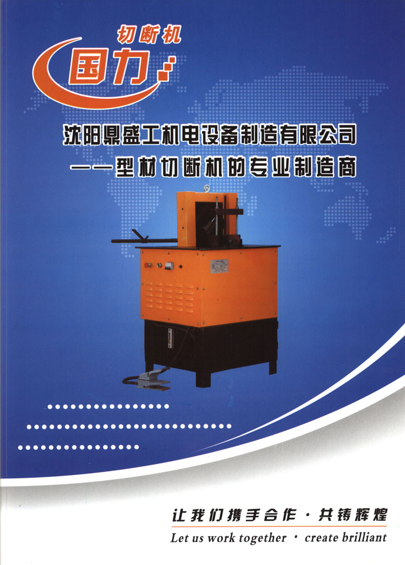 沈陽鼎盛工機(jī)電設(shè)備制造有限公司是一家集設(shè)計(jì)、生產(chǎn)、銷售、服務(wù)于一體的現(xiàn)代化企業(yè)。主要生產(chǎn):液壓金屬切斷機(jī)、沖剪機(jī)、液壓機(jī)床等系列產(chǎn)品,該產(chǎn)品適用于槽鋼、角鋼、工字鋼、圓鋼、方鋼、扁鋼等多種型材的下料和對角鋼、槽鋼的沖孔、開口加工。是現(xiàn)代機(jī)械制造業(yè)如:冶金、礦山、橋梁、電力、通訊、輸送機(jī)械制造業(yè)的理想設(shè)備,產(chǎn)品遍布全國各地。