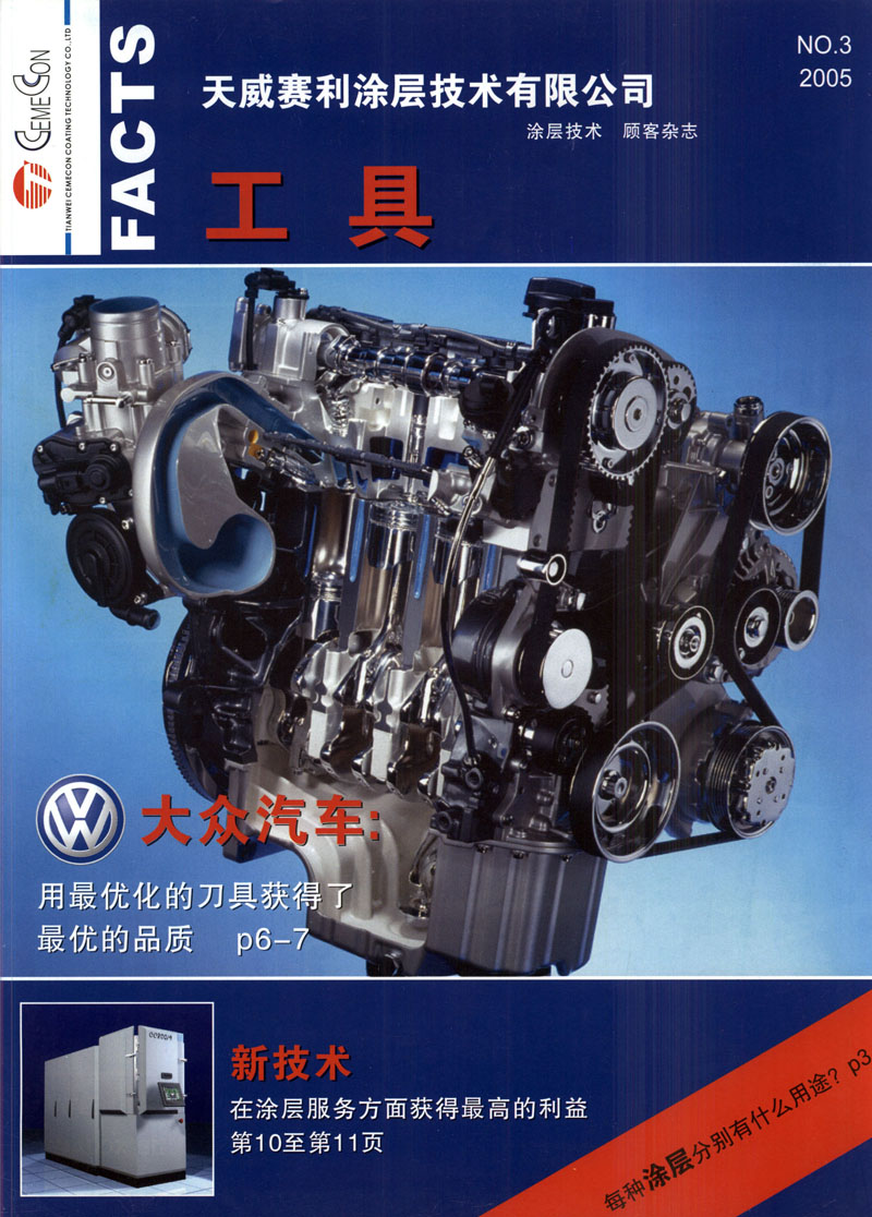 來(lái)自德國(guó)CemeCon公司的世界上最先進(jìn)的全套涂層生產(chǎn)設(shè)備,采廢冉?男VD磁控濺射技術(shù)與工藝,涂層表面極其平滑,從根本上避免了液滴現(xiàn)象.天威賽利公司的涂層產(chǎn)品具有以下突出特點(diǎn):