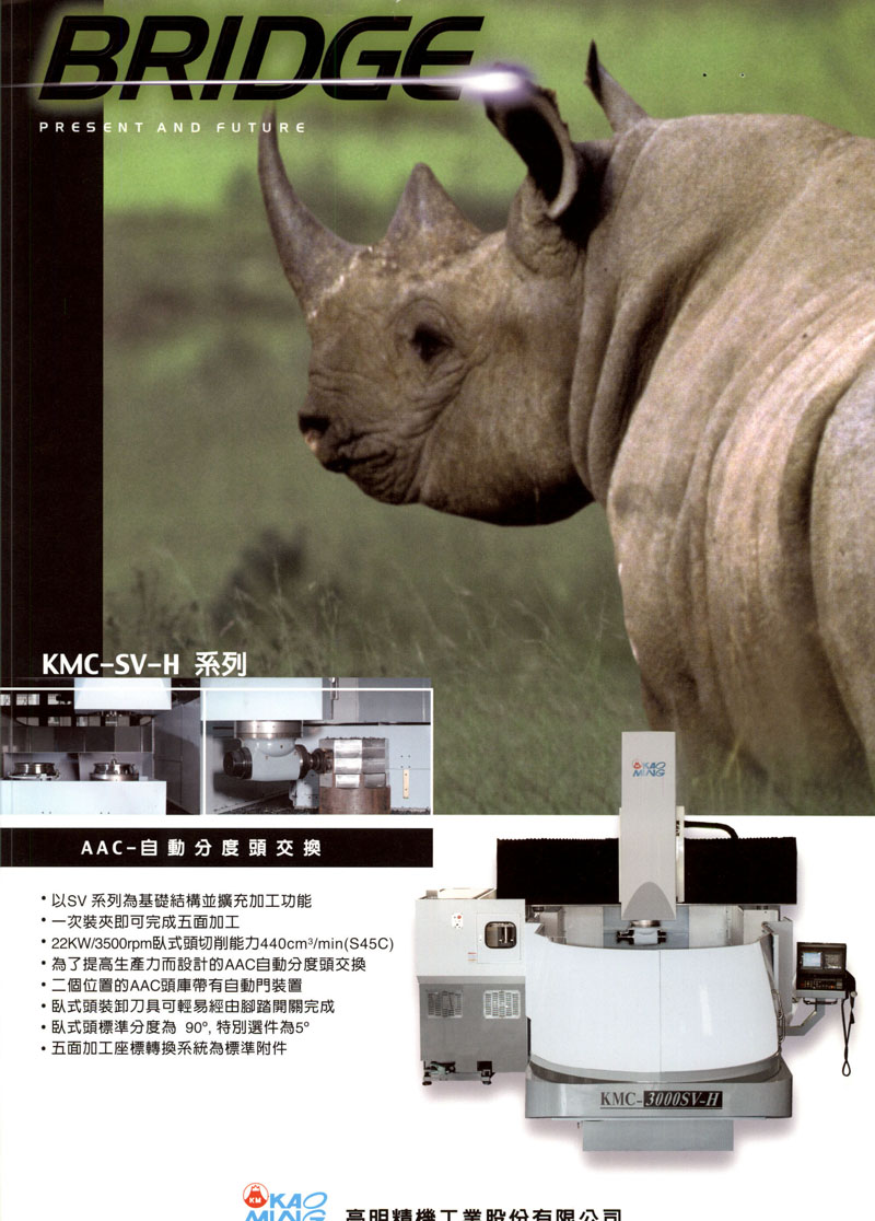 高明精機(jī)工業(yè)股份公司是一家國(guó)際知名的龍門加工中心制造廠商,設(shè)備供應(yīng)商,1973年開發(fā)旋臂鉆床為臺(tái)灣第一家研制成功,1983年開發(fā)CNC門型加工中心機(jī)成功,正式推入市場(chǎng),產(chǎn)品銷往歐洲,美洲,東南亞,非洲,澳洲等許多國(guó)家和地區(qū),我們的客戶遍及全球.1989年門型加工中心機(jī)經(jīng)德國(guó)TUV機(jī)構(gòu)認(rèn)證,1995年獲得ISO9002品質(zhì)管理認(rèn)證,產(chǎn)品之質(zhì)量符合機(jī)械電子安全通過,至今在大陸已銷售上千臺(tái),公司始終秉持品質(zhì)第一與服務(wù)至上的創(chuàng)業(yè)理念,并不斷積極研發(fā)創(chuàng)新,以追求卓越品質(zhì)來(lái)服務(wù)全球客戶.我們實(shí)施標(biāo)準(zhǔn)化作業(yè)及嚴(yán)格的品質(zhì)管理,以確保每臺(tái)出廠的機(jī)器都具有高水準(zhǔn)的品質(zhì).