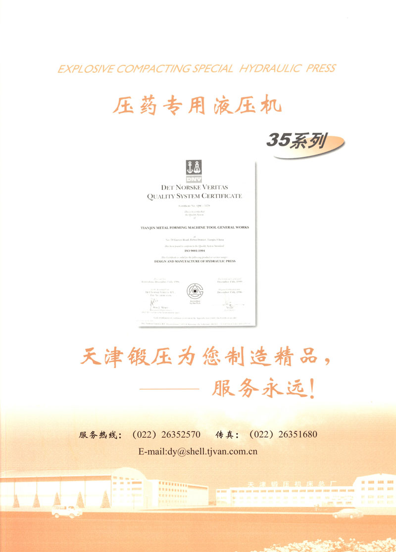天津市鍛壓機(jī)床總廠是我國(guó)起步最早的企業(yè),現(xiàn)有固定資產(chǎn)2.4億元各類專業(yè)技術(shù)人員480人,是機(jī)械部大型骨干企業(yè)。自我廠自行設(shè)計(jì)國(guó)內(nèi)第一臺(tái)液壓機(jī),開(kāi)創(chuàng)了我國(guó)中小型液壓機(jī)生產(chǎn)歷史以來(lái),目前擁有26個(gè)系列,300余品種,產(chǎn)品從80KN至5000KN,以形成年產(chǎn)1200臺(tái)各類液壓機(jī)的生產(chǎn)能力,居國(guó)內(nèi)同行業(yè)之首。1983年YT32-315四柱液壓機(jī)獲國(guó)家銀牌,1990年YT32-630/1030雙動(dòng)力拉伸液壓機(jī)一舉榮獲同行業(yè)唯一的國(guó)家金獎(jiǎng)另有部?jī)?yōu)產(chǎn)品3項(xiàng),市優(yōu)產(chǎn)品5項(xiàng)。產(chǎn)品廣泛適用于汽車制造、粉末冶金、金屬冷擠、輕工家電、化工機(jī)戒、航空航天、模具磨料、機(jī)戒制造等行業(yè),被國(guó)家指定為替代進(jìn)口產(chǎn)品,行銷全國(guó),產(chǎn)品出口到日本、荷蘭、東南亞等20多個(gè)地區(qū)和國(guó)家、市場(chǎng)占有率居全國(guó)同行業(yè)第一。