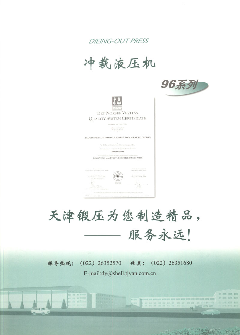 天津市鍛壓機床總廠是我國起步最早的企業(yè),現(xiàn)有固定資產(chǎn)2.4億元各類專業(yè)技術(shù)人員480人,是機械部大型骨干企業(yè)。自我廠自行設(shè)計國內(nèi)第一臺液壓機,開創(chuàng)了我國中小型液壓機生產(chǎn)歷史以來,目前擁有26個系列,300余品種,產(chǎn)品從80KN至5000KN,以形成年產(chǎn)1200臺各類液壓機的生產(chǎn)能力,居國內(nèi)同行業(yè)之首。1983年YT32-315四柱液壓機獲國家銀牌,1990年YT32-630/1030雙動力拉伸液壓機一舉榮獲同行業(yè)唯一的國家金獎另有部優(yōu)產(chǎn)品3項,市優(yōu)產(chǎn)品5項。產(chǎn)品廣泛適用于汽車制造、粉末冶金、金屬冷擠、輕工家電、化工機戒、航空航天、模具磨料、機戒制造等行業(yè),被國家指定為替代進口產(chǎn)品,行銷全國,產(chǎn)品出口到日本、荷蘭、東南亞等20多個地區(qū)和國家、市場占有率居全國同行業(yè)第一。