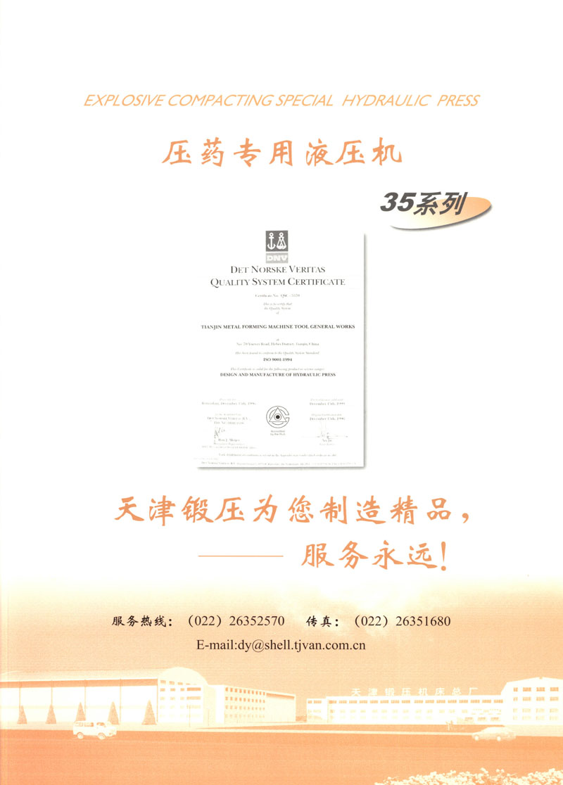 天津市鍛壓機(jī)床總廠是我國起步最早的企業(yè),現(xiàn)有固定資產(chǎn)2.4億元各類專業(yè)技術(shù)人員480人,是機(jī)械部大型骨干企業(yè)。自我廠自行設(shè)計(jì)國內(nèi)第一臺液壓機(jī),開創(chuàng)了我國中小型液壓機(jī)生產(chǎn)歷史以來,目前擁有26個系列,300余品種,產(chǎn)品從80KN至5000KN,以形成年產(chǎn)1200臺各類液壓機(jī)的生產(chǎn)能力,居國內(nèi)同行業(yè)之首。1983年YT32-315四柱液壓機(jī)獲國家銀牌,1990年YT32-630/1030雙動力拉伸液壓機(jī)一舉榮獲同行業(yè)唯一的國家金獎另有部優(yōu)產(chǎn)品3項(xiàng),市優(yōu)產(chǎn)品5項(xiàng)。產(chǎn)品廣泛適用于汽車制造、粉末冶金、金屬冷擠、輕工家電、化工機(jī)戒、航空航天、模具磨料、機(jī)戒制造等行業(yè),被國家指定為替代進(jìn)口產(chǎn)品,行銷全國,產(chǎn)品出口到日本、荷蘭、東南亞等20多個地區(qū)和國家、市場占有率居全國同行業(yè)第一。
