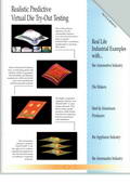 在報(bào)價(jià)階段,用戶能夠得到板料邊界線并進(jìn)行排樣,用于材料費(fèi)用和拉延模的評(píng)估。在可行性論證階段,模面設(shè)計(jì)工程師能夠建立基于B-樣條的工具型面,并且調(diào)整得到?jīng)]有破裂、起皺等缺陷的成形工藝的詳細(xì)參數(shù),包括:全工序結(jié)果、包邊結(jié)果、修邊線展開和優(yōu)化、板料線優(yōu)化。在精確驗(yàn)證階段,工程師可以精確地預(yù)測(cè)回彈并據(jù)此補(bǔ)償模具(包括拉延模面和后工序模面),還可以檢測(cè)外觀缺陷和可視化缺陷用于生產(chǎn)線的對(duì)比??尚行哉撟C和精確驗(yàn)證的軟件設(shè)置是相似的,區(qū)別只在于計(jì)算結(jié)果的精度不同。
