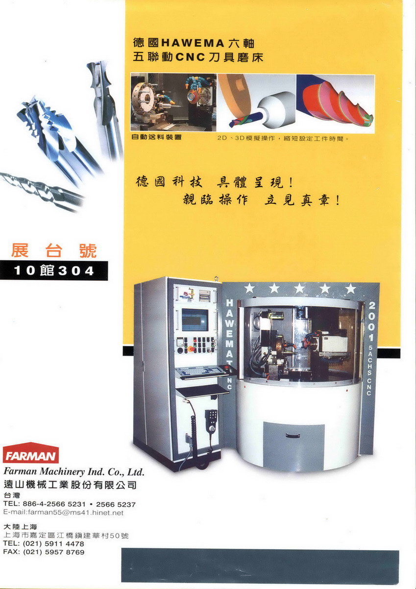 Welcome to the Farman Machinery Industrial Co., Ltd. Our company is a professional manufacturerwith over 30 years, and dedicate in design and development, sales and services, and manufacturing a series of tool grinding. For three decades, Farman Machinery provides products and services with high quality to many domestic and foreign manufacturers by excellent technology, advanced detection instruments, and continuous innovation, expansion of its product.