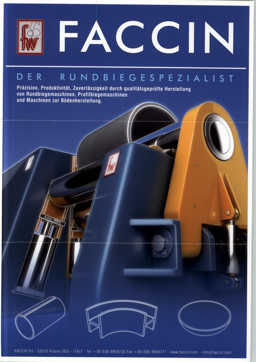 FACCIN公司是專業(yè)生產(chǎn)數(shù)控卷板機、型彎機、封頭旋壓機和數(shù)控法蘭機等鍛壓成形設(shè)備的世界一流廠家;FACCIN 公司位于意大利北方工業(yè)區(qū)的布雷西亞,總占地面積約 80,000 平米。在歐洲生產(chǎn)卷板機的廠家中,F(xiàn)ACCIN 公司擁有多套世界最知名企業(yè)生產(chǎn)的大型加工設(shè)備,是唯一的一家在自己的車間里加工設(shè)備主要構(gòu)件的設(shè)備生產(chǎn)廠家,做到真正的百分百意大利制造;從設(shè)計、材料切割、部件機加、結(jié)構(gòu)焊接和設(shè)備總裝,都是由FACCIN 公司經(jīng)驗豐富的專業(yè)工程師來完成,確保了每臺設(shè)備的每個零部件在加工的全過程中保持高品質(zhì)和高可靠。