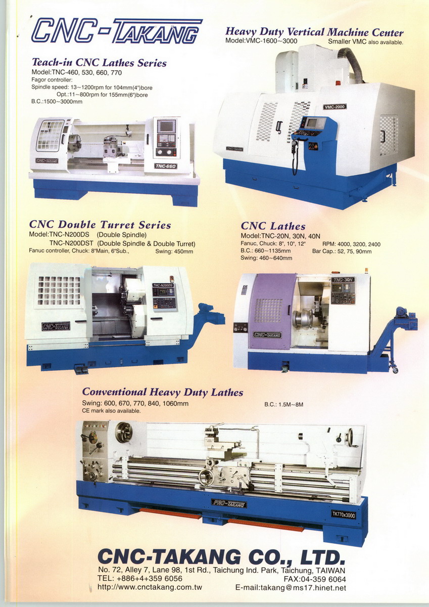 優(yōu)岡(CNC-TAKANG)主要產(chǎn)品有: