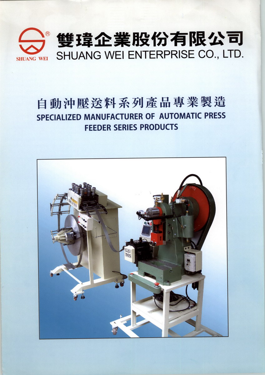 雙瑋企業(yè)股份有限公司,主要經(jīng)營自動沖壓送料系列產(chǎn)品,公司注冊資本未知,我公司的辦公地址位于珠江口東岸,廣東歷史文化名城東莞,中國 廣東 東莞市