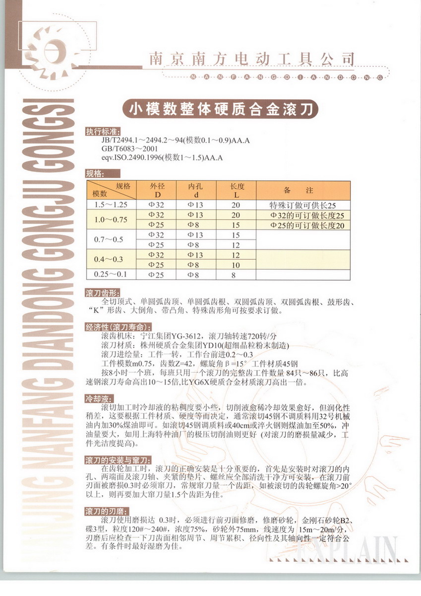 南京南方電動(dòng)工具公司是從事研制、開(kāi)發(fā)和規(guī)模生產(chǎn)小模數(shù)圓柱形齒輪、齒軸以及硬質(zhì)合金滾刀的專業(yè)化廠家。在國(guó)內(nèi)電動(dòng)工具行業(yè)裝機(jī)用齒輪、齒軸,電光源繞絲機(jī)及精密減速器用,低噪音齒輪等領(lǐng)域享有盛譽(yù)。