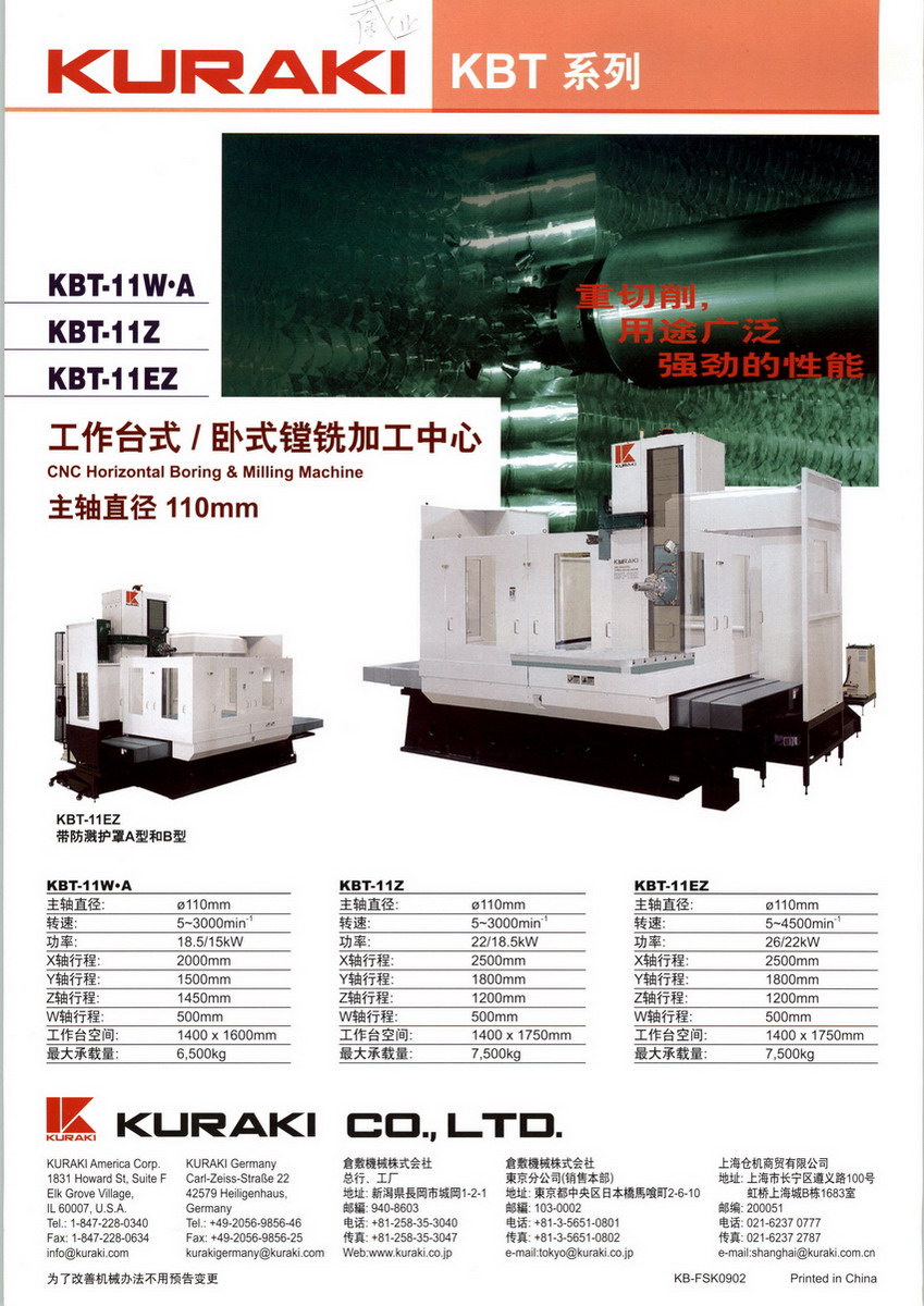 在中國經(jīng)濟(jì)快速發(fā)展中,為銷售CNC數(shù)控臥式鏜銑加工中心,并提供售后服務(wù)而設(shè)立的。首先于2002年開設(shè)了香港營業(yè)所、然后開設(shè)了上海代表處,最終于2005年12月設(shè)立了上海倉機(jī)商貿(mào)有限公司,100%由日本倉敷株式會社全資的子公司。該公司成為倉機(jī)(KURAKI)與中國之間的橋梁,通過代理商銷售到了中國大陸。公司里保證有維護(hù)用零部件的庫存,并由經(jīng)驗(yàn)豐富的日本人工程師迅速地對應(yīng)用戶的問題。