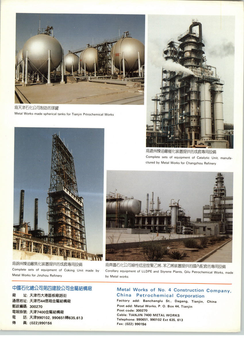公司歷年承建國內(nèi)外各類工業(yè)裝置千余套。先后參加了朝鮮、科威特、新加坡、沙特阿拉伯、阿聯(lián)酋、香港等國家或地區(qū)的40余套石油化工生產(chǎn)裝置建設(shè)。