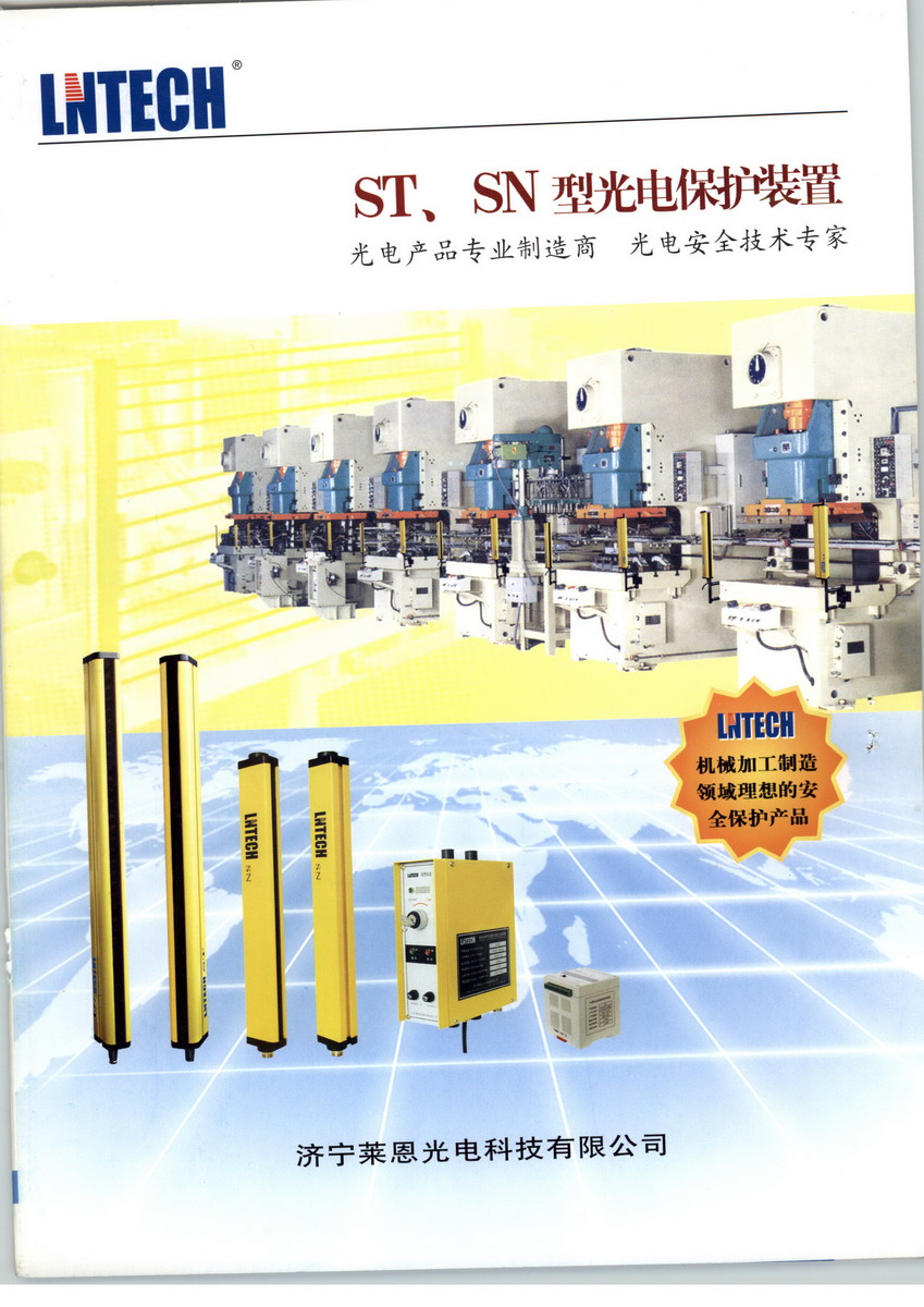 萊恩光電科技有限公司(華南)營銷中心是高起點(diǎn)、高標(biāo)準(zhǔn)的科技型企業(yè),主要從事光電安全產(chǎn)品的研發(fā)、制造和銷售,為機(jī)械加工、機(jī)械制造企業(yè)提供安全保護(hù)產(chǎn)品和安全技術(shù)解決方案。 專業(yè)的技術(shù),先進(jìn)的設(shè)備,成熟的工藝、完善的質(zhì)量保證體系和豐富的安全保護(hù)從業(yè)經(jīng)驗(yàn),是我們?yōu)槟峁﹥?yōu)質(zhì)產(chǎn)品和服務(wù)的保證。 在現(xiàn)代化工廠里,人與機(jī)器協(xié)同工作,在一些具有潛在危險(xiǎn)的機(jī)械設(shè)備上,如沖壓機(jī)械、剪切設(shè)備、金屬切削設(shè)備、自動(dòng)化裝配線、自動(dòng)化焊接線、機(jī)械傳送搬運(yùn)設(shè)備、危險(xiǎn)區(qū)域,易造成作業(yè)人員的人身傷害。 光電保護(hù)裝置,又稱為安全光幕、安全光柵、光電保護(hù)器,沖床安全保護(hù)器,壓力機(jī)安全保護(hù)裝置,機(jī)床安全保護(hù)器,是通過發(fā)射紅外線,產(chǎn)生保護(hù)光柵,當(dāng)光柵被遮擋時(shí),裝置發(fā)出遮光信號(hào),控制具有潛在危險(xiǎn)的機(jī)械設(shè)備停止工作,以降低作業(yè)人員在工作環(huán)境中受到傷害的可能性,有效保護(hù)作業(yè)人員的人身安全。 萊恩光電科技公司生產(chǎn)的光電保護(hù)裝置分為兩種類型五大系列:ST型光電保護(hù)裝置,又分為STF系列、STD系列、STQ系列 SN型光電保護(hù)裝置,又分為SNA系列、SNB系列,主要用于小型沖壓設(shè)備、剪切設(shè)備、機(jī)械加工設(shè)備、注塑機(jī)械、切紙機(jī)械、木工加工機(jī)械、立體車庫、以及其它危險(xiǎn)區(qū)域的防護(hù)。 SN系列、ST系列光電保護(hù)裝置均具有以下特點(diǎn): 1. 具有完善的自檢功能--當(dāng)光電保護(hù)裝置失電或自身出現(xiàn)故障時(shí),確保不向所控制的電器發(fā)出錯(cuò)誤信號(hào) 2. 抗干擾能力強(qiáng)--對(duì)電磁信號(hào)、頻閃燈光、焊接弧光及周圍光源具有良好的抗干擾能力。 3. 使用壽命長--繼電器有效輸出次數(shù)大于100萬次,繼電器達(dá)到使用壽命后,可更換。 4. 具有良好的抗震性能--元器件焊接采用SMD技術(shù),并有多項(xiàng)抗震措施。 5. 可根據(jù)用戶要求設(shè)置自保功能--當(dāng)光幕被遮擋時(shí),壓力機(jī)滑塊停止運(yùn)行,再次接通光線,壓力機(jī)不能 運(yùn)行,必須按動(dòng)復(fù)位按鈕后,壓力機(jī)滑塊才能再次啟動(dòng)。 6. 規(guī)格品種多,最大限度的滿足您的要求。 7. 結(jié)構(gòu)簡(jiǎn)單,接線方便--信號(hào)電纜采用航空插件連接。 8. 參照歐洲標(biāo)準(zhǔn)設(shè)計(jì),安全可靠。 9. 快速響應(yīng)能力--響應(yīng)時(shí)間小于20ms,最大限度的避免了危險(xiǎn)。 10.雙繼電器安全信號(hào)輸出,最大限度的增強(qiáng)了輸出信號(hào)的可靠性。 11.利用LED顯示工作狀態(tài)和故障狀態(tài),便于使用和故障判斷。 12.可提供NPN、PNP輸出,此時(shí)用戶應(yīng)保證機(jī)械設(shè)備的后續(xù)控制電路安全可靠。 13.需要保護(hù)的區(qū)域不在一個(gè)平面時(shí)(如同時(shí)需要垂直保護(hù)和水平保護(hù)),光電保護(hù)裝置可串聯(lián)使用。 14.通用性強(qiáng),對(duì)光容易。