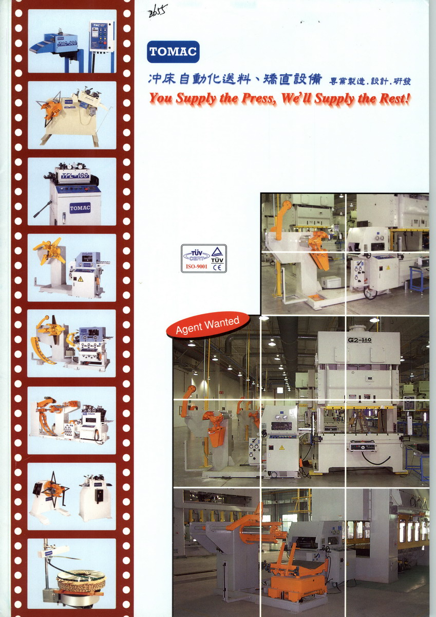 拓誠(chéng)機(jī)械股份有限公司已有10多年的歷史,專業(yè)制造沖床送料機(jī)、料架矯直機(jī)、伺服送料機(jī)、開卷機(jī),累積豐富的生產(chǎn)經(jīng)驗(yàn)及卓越的研發(fā)設(shè)計(jì)能力并引進(jìn)日本專業(yè)技術(shù),在送料機(jī)同業(yè)中堪稱首屈一指之制造廠商,擁有規(guī)范的管理體系和一流的技術(shù),為客戶提供高品質(zhì)、高效能、人性化、自動(dòng)化之優(yōu)良產(chǎn)品。本公司一直秉持”質(zhì)量為企業(yè)之本”的管理觀念,已獲得ISO 9001的國(guó)際認(rèn)證,且三合一NC伺服送料機(jī)也通過CE國(guó)際認(rèn)證,產(chǎn)品行銷歐美及東南亞。