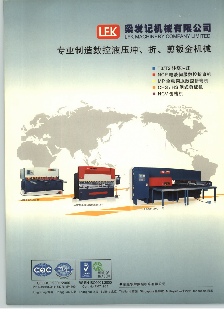 LFK香港梁發(fā)記機械集團(tuán)公司其下3間下屬公司,已發(fā)展成為集科研、開發(fā)、生產(chǎn)、銷售以及服務(wù)于一體的高新科技企業(yè)。1992年自置30000平方米廠房,成立了東莞華輝數(shù)控機床有限公司,在位于交通便利的廣東省東莞市清溪鎮(zhèn)。2008年2月自置70000多平方米廠房,成立了信宜華輝數(shù)控機床有限公司。2014年11月自置10000多平方米廠房,成立了信宜協(xié)華精密鈑金有限公司?,F(xiàn)共有600多名人員。在管理方面采用全電腦的管理體系。具有先進(jìn)的技術(shù)、優(yōu)良的品質(zhì)、優(yōu)質(zhì)的服務(wù)、贏得了廣大客戶的贊譽。